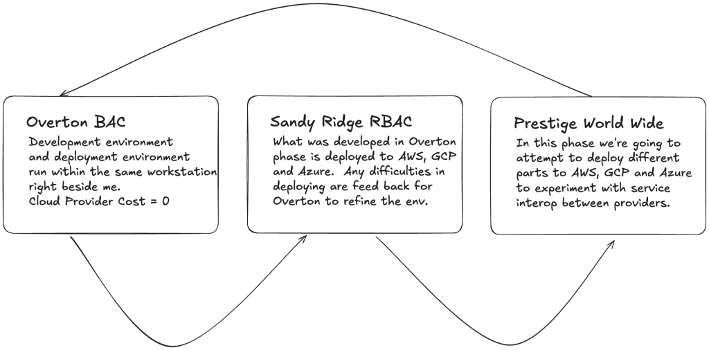 - Phase 1 Overton BAC A fictional Big Ass Company. I’m building out a machine with all the stuff I need to pretend like I’m deploying to a cloud provider. The goal is to get as far as I can into devloping a “non-trivial” enterprise application without checking my work on AWS, GCP or Azure.